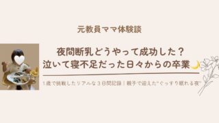 育児 夜間断乳どうやって成功した?泣いて寝不足だった私のリアル体験談 夜間断乳を始めたいけど不安なママへ。完母で育てた私が、夜間断乳を決意した理由から3日間のリアル経過、そして終えて感じた変化までをまとめました。泣いた夜もあったけど、やってよかったと心から思えます。 2025.10.16 育児