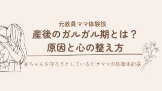 ママの心と体 産後のガルガル期とは?原因と私の体験談|イライラが止まらない時の心の整え方 出産後、家族や夫にイライラしてしまう…それは「ガルガル期」かもしれません。この記事では、元小学校教諭ママの私が体験した産後のガルガル期と、その原因・乗り越え方をやさしく解説します。 2025.10.09 ママの心と体